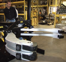 The hydraulic line of gear and bearing puller featuring the patented Safety Cage design has been expanded to include a 4-jaw, 200 ton puller. The PH-200T jaws have a reach of 1219mm and a spread range from 203.2 to 1333.5mm. The hydraulic-powered dual mast lift cart will extend from ground to 1524 mm. The puller can be removed from the cart and can be used in either horizontal or vertical positions. Jaws are hydraulically guided by the safety cage and jaw tips can be manually adjusted for optimal contact with the pulling surface. Operator convenience and safety is further enhanced with a two-stage electric pump featuring a remote jog switch.
