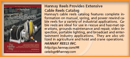 features complete information on manual, spring, and power rewind cable reels for a variety of industrial applications