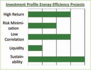 Energy efficiency projects are attractive investments; shortpay backs allow for appealing returns, risks can partially be mitigated with guaranteed performance from technology providers, returns are not correlated to classical markets, and projects have a clear environmental benefit reducing carbon emissions.