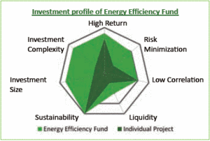 The fund is mandated to mobilize private capital in the energy efficiency space, by directly investing in energy efficiency projects. The projects are focused on tried and tested technologies and are executed and guaranteed by renowned technology partners.