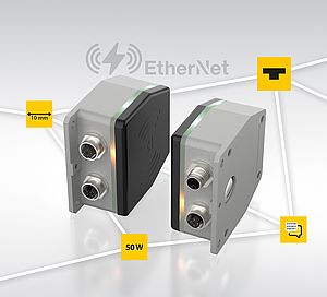 Turck's NIC-Q86-ETH inductive Ethernet multiprotocol coupler is opening up the possible range of application fields for contactless power and data transmission. The coupler transmits up to 50 W of power as well as 100 Mbit/s full duplex latency-free (<1 µs) data in all Ethernet protocols. This makes the new system the ideal interface between moving components or mobile applications and machine parts for particularly high real-time, performance or data rate requirements, especially when they are connected via Turck's multiprotocol and EtherCAT I/O modules and controllers that operate automatically in Profinet, Ethernet/IP, Modbus TCP and EtherCAT networks. Turck continues to offer the compact and robust NIC couplers with IO-Link COM3 and 230.4 kbit/s for applications in the IO-Link environment and for up to 18 watts of power.