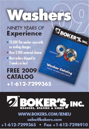 Boker's, Inc. is a Woman Owned, ISO 9001:2008 registered manufacturer of precision stampings and non-standard washers and spacers. Request a complimentary copy of the 2011 Washer Catalog today!