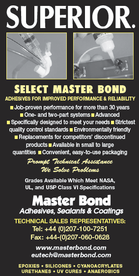 Master Bond Inc. is a leading manufacturer of high performance adhesives, sealants, coatings, potting and encapsulation compounds and impregnation resins. Our line of products consists of epoxies, polyurethanes, silicones, acrylics, polyamides and latex systems.